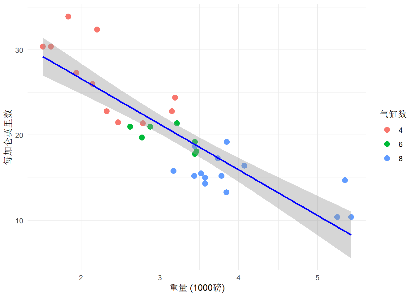 mpg = \beta_0 + \beta_1 \cdot 重量 + \beta_2 \cdot 气缸数 + \epsilon